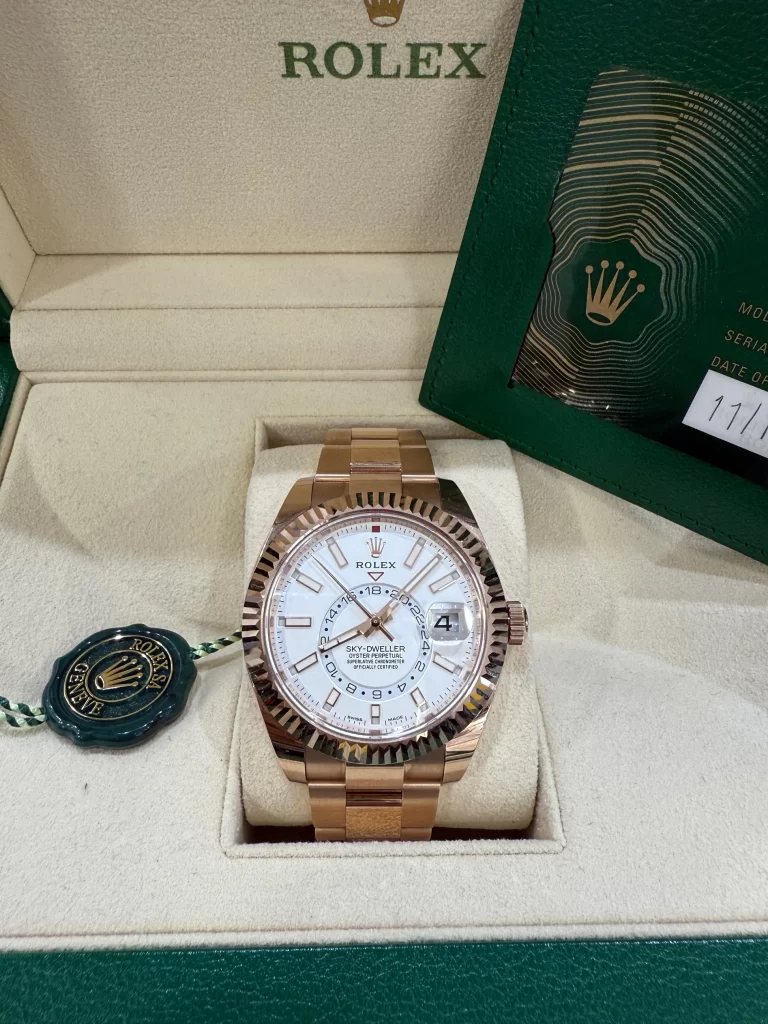 ¿Podrías ser nuestro próximo ganador? Joyería Giveaways PARTICIPA YA ROLEX SKY DWELLER ROSE GOLD WHITE PEARL FACE 41MM – 326935 Add to Cart